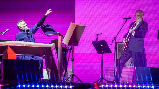 Páez, a esa altura de la noche con dos horas de agite sin parar de emocionarse, recordó el día que conoció y se deslumbró con David “en el teatro Astengo de Rosario, tocando con Polifemo”. Lebon, ante la multitud, agradeció, con humildad “gracias por invitarme y tocar ante tu gente”.