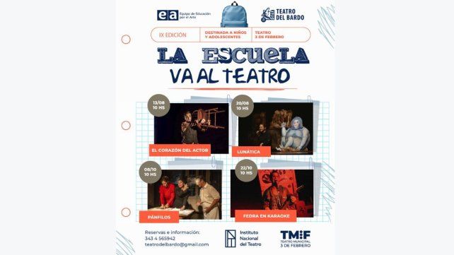 La escuela va al teatro: propuestas artístico-pedagógicas en octubre en Paraná