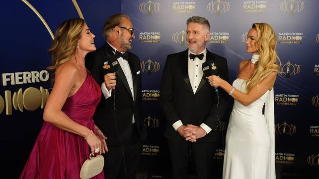 Gustavo Sylvestre también se destacó entre los protagonistas de la noche. El conductor de Mañana Sylvestre (Radio 10) llegó en el horario central y fue el ganador del premio por su labor periodística en AM. En ese mismo bloque se destacó Sebastián Wainraich, ganador de la terna Conductor de FM, quien ingresó junto a su pareja Dalia Gutmann. Más tarde, también fueron vistos Andy Kusnetzoff y María O’Donnell, referentes de Urbana Play, que saludaron brevemente a colegas y posaron para las cámaras.