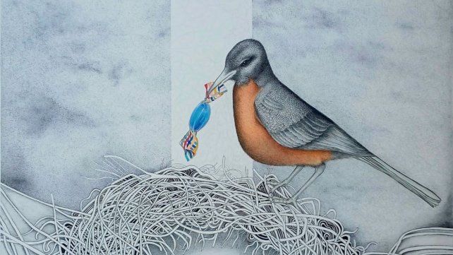 En diálogo con UNO, Garello reveló: “No sólo los pájaros preparan sus nidos, los humanos también lo hacemos. Es un comportamiento instintivo que hemos conservado para la continuidad de la especie, como cuando preparamos el cuarto del hijo que va a nacer, reformamos una habitación, la casa, es la llamada de la naturaleza. Me inspiró El Nido de los pájaros, la diferencia entre ellos, y me introduje, mediante el dibujo, con grafito, tinta, lápiz color, intentando imitar esa estructura de ramas, palitos, hojas, plumas”.