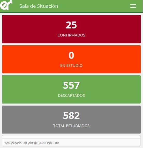 De ese modo, en la provincia son 25 los casos confirmados, permanecen en cero los casos en estudio y 557 ya han sido descartados; en tanto que en total se han estudiado 582 casos.