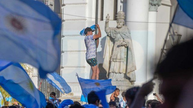 En la Plaza 1° de Mayo se festeja con todo el triunfo ante Croacia.