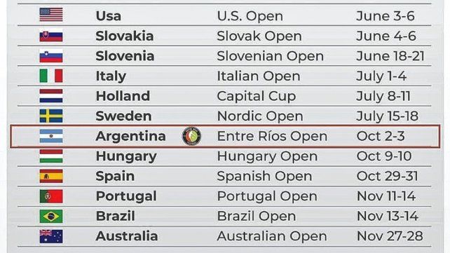 “Es una gran alegría ya que es un torneo de un prestigio mundial. Dentro del World Tour hay cuatro Major que otorgan 1000 puntos. Es como los Grand Slam de tenis. Es muy similar el formato. Son cuatro los Major, uno en Argentina, uno en Cancún, otro es en Francia e Inglaterra. Luego de esos vienen los 500 que son 12 en todo el mundo y se reparte proporcionalmente también. Dos en Sudamérica, dos en norteamérica, varios en Europa y algunos en Asia. Y de esos dos en Sudamérica uno se hace en Brasil, el segundo país después de Argentina en jugadores y juego. Y el otro es el Open de Entre Ríos. Se eligió porque las fronteras abiertas para ese mes. Es un lugar equidistante con Buenos Aires, Uruguay y Paraguay también. Estamos muy contentos”, confesó Brunelli quién hace dos años es el mandamás de esta disciplina en la provincia.