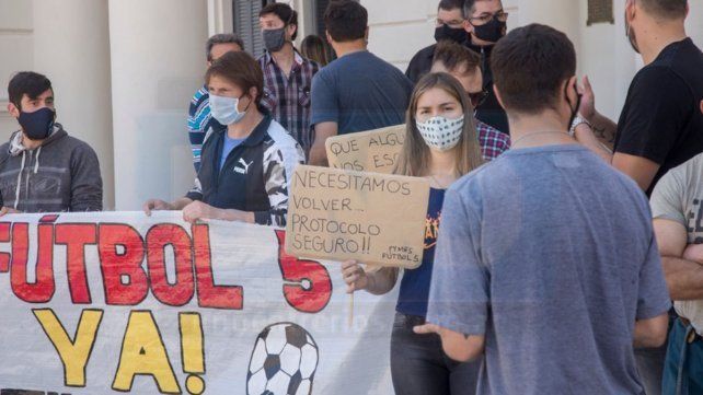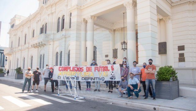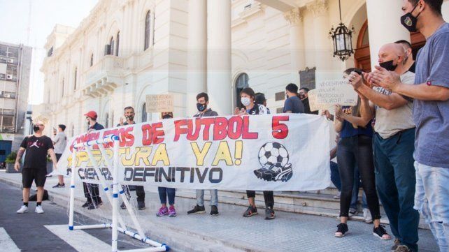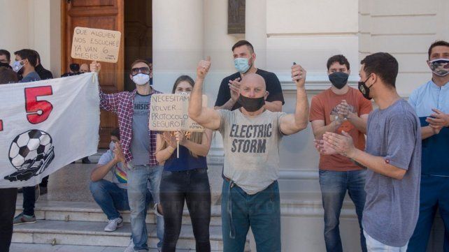Titulares y empleados de Complejos deportivo y Fútbol 5 llegaron este mediodía hasta la explanada de Casa de Gobierno, en Paraná, para reclamar la rehabilitación de la actividad en el marco de la flexibilización de actividades en la cuarentena por la pandemia del Coronavirus Covid-19.