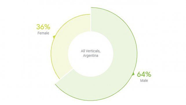 En Argentina, los personajes masculinos se vieron casi 1.5 veces más en videos locales. En general se veían el 58% del tiempo, mientras que los personajes femeninos solo en un 42%. Al analizar cada caso, se observa que la participación de las mujeres en roles destacados aumentó en un 4% en los últimos 10 años.