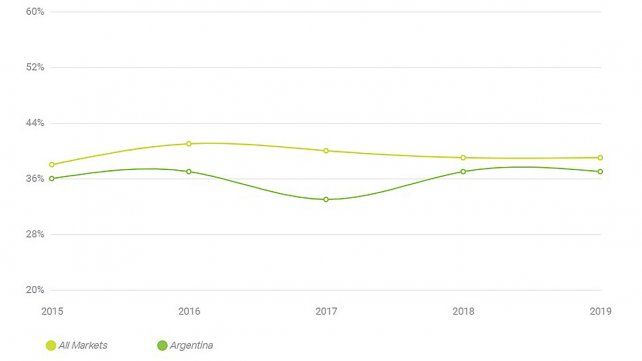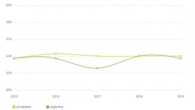 En este caso, Argentina se encuentra por debajo de las tendencias globales en los últimos años:
