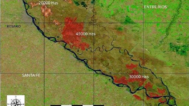 La Comisión Nacional de Actividades Espaciales (Conae) informó que hasta este jueves se quemaron 95.000 hectáreas del delta del río Paraná, producto de los incendios en las islas de Victoria y alrededores. Además, el organismo dio cuenta de la presencia de aerosoles y otros contaminantes en el aire de la región.