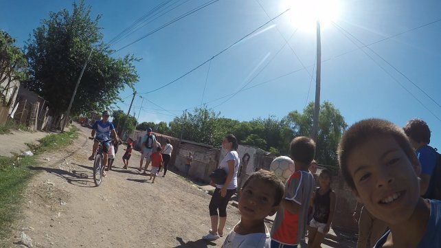Los chicos lo buscaron a Tingo en una de las esquinas del barrio, donde termina el asfalto. Ellos querían las fotos y las camisetas para jugar un partidito en la cancha que carece de arcos.