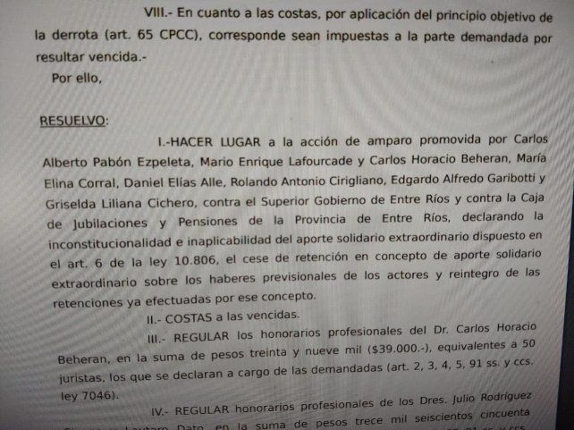 Se conoció en la resolución judicial, a la que accedió UNO, que los exfuncionarios judiciales de Gualeguay que presentaron en amparo, fueron María Elina Corral, Daniel Elías Alle, Ronaldo Antonio Cirigliano, Edgardo Garibotti y Griselda Liliana Cichero.
