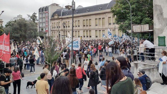 Al llegar al Centro Cívico, las columnas de manifestantes se desparramaron a lo largo y ancho de una plaza Mansilla que quedó completamente llena. Allí, frente a la Casa de Gobierno de la provincia, se leyó el documento consensuado a nivel nacional por el CIN (Consejo Interuniversitario) y las federaciones de docentes, estudiantes y trabajadores.