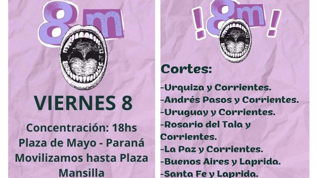 Este viernes 8 de marzo, Día Internacional de la Mujer Trabajadora, habrá actos y movilizaciones en todo el país en el marco del paro internacional feminista por el 8M, contra la violencia hacia mujeres y disidencias y contra el ajuste económico del Gobierno de Javier Milei. En Buenos Aires la concentración central será frente al Congreso de la Nación a las 16 y se replicará en ciudades de todas las provincias. Este 2024 el lema es Contra el hambre y las políticas de ajuste. Hacemos marea juntes; mientras que a nivel provincial. En Entre Ríos habrá actividades en todos los municipios y las principales ciudades de la provincia realizarán marchas, radios abiertas y asambleas. La bandera es “Nosotras/ es no somos la casta. Ni un ataque más. Ni un derecho menos. Con hambre y represión no hay libertad”.