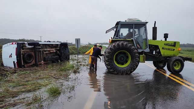 Asimismo se indicó que una camioneta Renault Master de una empresa de Santa Fe volcó en el kilómetro 24, cerca de arrollo El Espinillo, producto del agua en la calzada. El chofer del utilitario perdió el control del rodado que quedó volcado sobre uno de los laterales.