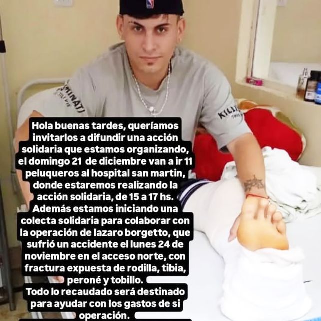 Además los organizadores destacaron que están iniciando una colecta solidaria para recaudar fondos para colaborar con Lázaro Borgetto, quien sufriera un accidente el lunes 24 de noviembre en el Acceso norte y debe ser operado. El diagnóstico es fractura expuesta de rodilla, tibia, peroné y tobillo.