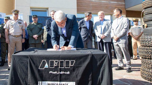El ministro de Seguridad llegó a Gualeguaychú junto a Guillermo Michel, el entrerriano titular de la Dirección General de Aduanas, para la entrega de neumáticos secuestrados en procedimientos por contrabando, que servirán ahora a las fuerzas de seguridad locales y se distribuirán entre la Policía Federal, Gendarmería y Prefectura.