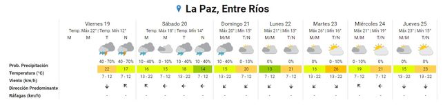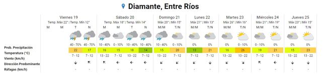 Este viernes las tormentas aisladas continuarán toda la tarde y la noche con probabilidades de hasta 70%. Se esperan también chaparrones por la noche en la zona sur de la provincia. La temperatura se ubicará entre 22° y 17°, todavía cálida para la época.