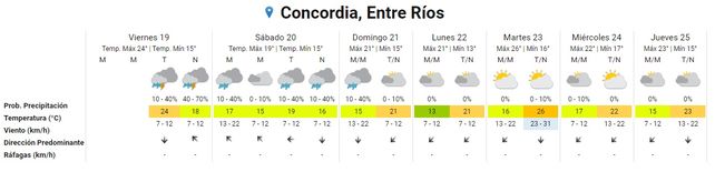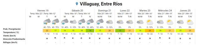 El pronóstico del tiempo indica que este fin de semana será casi enteramente lluvioso en Entre Ríos, con lluvias que ya se instalaron este viernes, continuarán durante el sábado y se quedarán hasta el domingo, con un pequeño descenso de temperaturas, luego de varias jornadas inusitadamente cálidas.