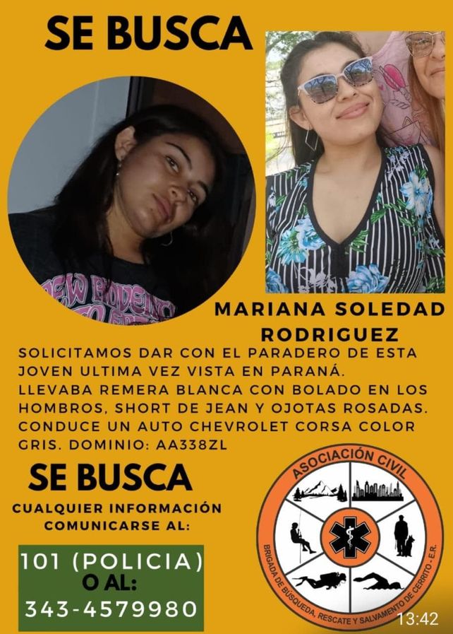 Una madre manifestó su desesperación al no poder dar con el paradero de su hija, Mariana Soledad Rodríguez, quien se ausentó de su domicilio en la ciudad de Cerrito y fue vista por última vez en Paraná.