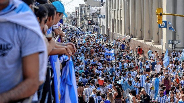 Un mar celeste y blanco compuestos por personas de todas las edades, familias, grupos de jóvenes y batucadas se adueñó este domingo del corazón de Paraná para desahogarse y cantar por el inolvidable regalo de la Scaloneta para su pueblo.