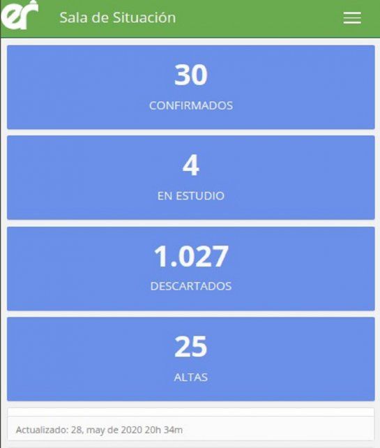 De acuerdo a los datos reportados al 28 de mayo de 2020 a las 19.30 horas por el área de Vigilancia Epidemiológica del Ministerio de Salud, en Entre Ríos se ha sumado un nuevo caso de Coronavirus.