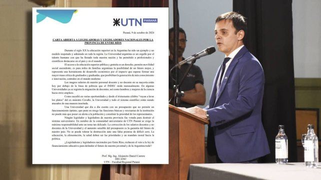 Decano de la UTN Paraná realizó una carta abierta a legisladores nacionales entrerrianos
