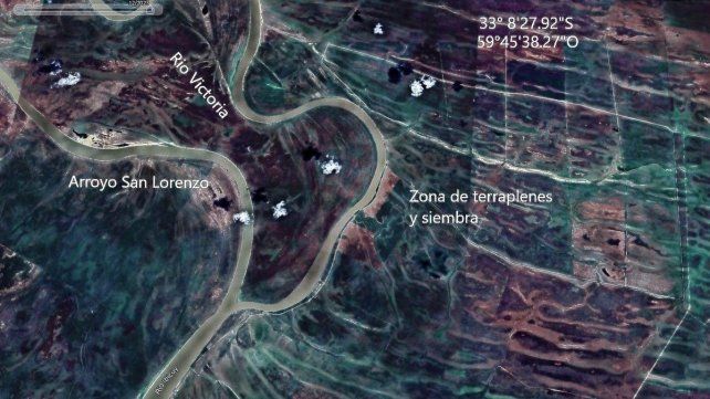 Activistas socio ambientales denunciaron la fumigación con medios aéreos en una zona de humedales de Delta. El campo pulverizado con agrotóxicos se encuentra a orillas del río Victoria, a unos 40 kilómetros al Oeste de Gualeguay, en el límite interdepartamental, según se pudo ubicar satelitalmente.
