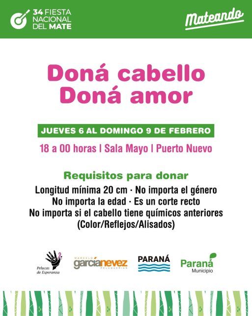 La donación de cabello es un acto de gran generosidad que permite a quienes lo necesitan acceder a pelucas de calidad. García Nevez señaló que los voluntarios de la ONG estarán disponibles para cortar el cabello a todos aquellos que deseen colaborar. “Vamos a estar en la Fiesta Nacional del Mate en la Sala Mayo para cortar el cabello gratis a quienes vayan a donar. Para donar, el requisito es que el mínimo es de 20 centímetros. No importa el género de la persona ni la edad. Tampoco importa la calidad del cabello o si tiene químicos anteriores. En Gualeguaychú acondicionan el pelo. También aceptamos pelucas en desuso, sobre todo por los casquetes, que es lo más caro”, explicó.