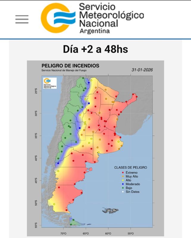 Ante el último reporte del Servicio Meteorológico Nacional (SMN), la Dirección Provincial de Defensa Civil, dependiente del Ministerio de Seguridad y Justicia, reforzó las tareas de monitoreo y sensibilización sobre el riesgo ígneo en todo el territorio entrerriano.