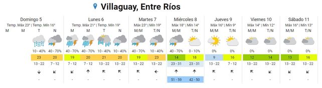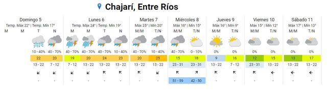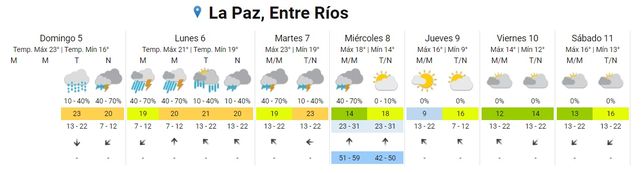 Finalmente, las precipitaciones se retirarían de la provincia hacia el jueves, con cielo ligeramente nublado. Esta jornada estaría marcada por bajas temperaturas y mucho frío, ya que la mínima descendería hasta 9° y las máximas apenas rozarían los 16°.