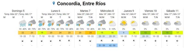 El Servicio Meteorológico Nacional (SMN) tiene vigente un alerta por tormentas fuertes para la madrugada y la mañana de este lunes que abarca a toda la provincia. Este domingo también podría haber precipitaciones y Entre Ríos tendrá una semana con más lluvias.