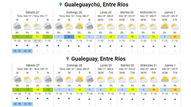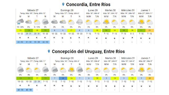En el sur de Entre Ríos habrá registros más bajos todavía: para el domingo se prevé que la temperatura mínima llegue a los 4° en ciudades como Gualeguaychú, Concepción del Uruguay y Colón.