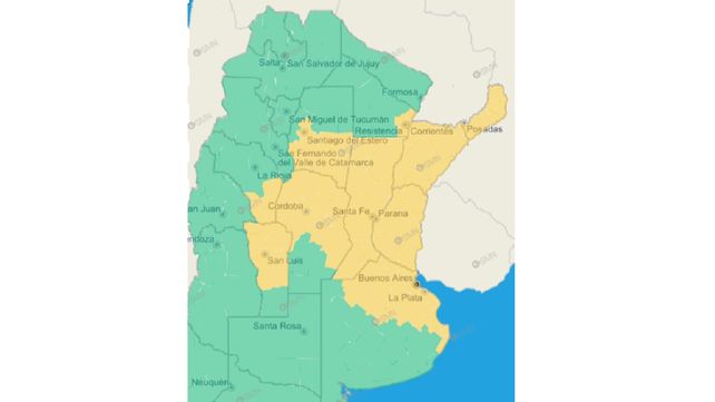 El alerta por tormenta, de nivel amarillo, comprende a los departamentos Gualeguay, Victoria, Colón, Gualeguaychú, Islas del Ibicuy, Tala y Uruguay para la madrugada del miércoles. "El área será afectada por tormentas, algunas localmente fuertes. Se espera que las mismas estén acompañadas por intensas ráfagas, fuerte actividad eléctrica, ocasional caída de granizo y principalmente abundante caída de agua en cortos períodos", precisó el organismo nacional.