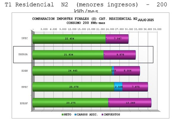 Es así que en todas estas categorías, las tarifas resultaron entre un 5% y un 20% inferiores a las de las distribuidoras de las provincias vecinas.