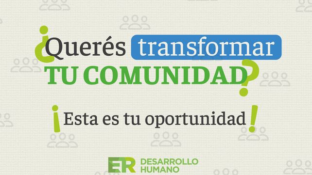 El Ministerio de Desarrollo Humano de Entre Ríos recibe propuestas para el programa Transformando Comunidades que tiene como objetivo financiar proyectos comunitarios con hasta dos millones de pesos. Hay tiempo hasta el 9 de mayo para inscribirse.