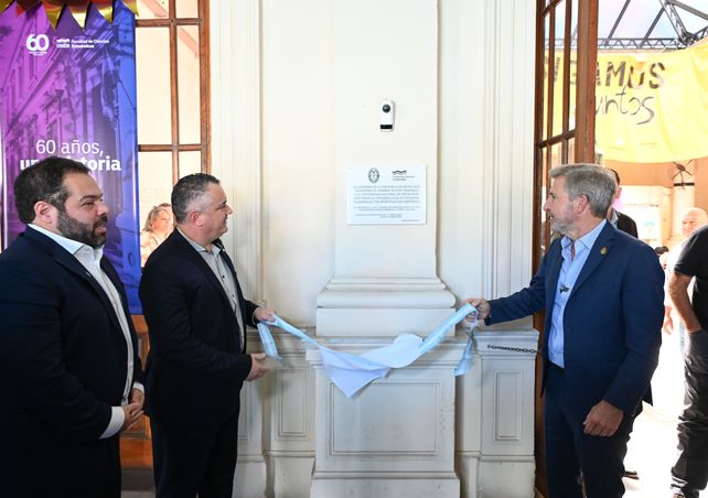 La entrega se realizó en el marco de una visita del mandatario provincial a la facultad, donde mantuvo un encuentro de trabajo junto al decano Sebastián Pérez, autoridades académicas; el ministro de Gobierno y Trabajo, Manuel Troncoso; y el presidente del Consejo General de Educación, Carlos Cuenca.