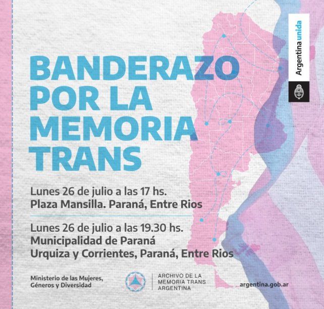 Entre Ríos participará de una acción federal impulsada por el Archivo de la Memoria Trans Argentina que busca mantener viva la memoria de ese colectivo. La convocatoria está prevista para este lunes 26, a las 17, en plaza Mansilla y continuará a las 19.30 en la Municipalidad de Paraná.