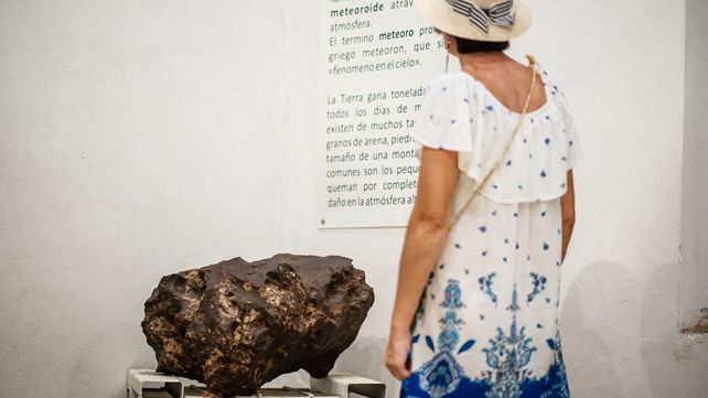 "Esta es la única roca de la sala que no pertenece a la corteza terrestre", reza la cartelería del Museo Provincial Antonio Serrano de Paraná al presentar los dos cuerpos celestes de color oscuro, con una similitud a una gran piedra y con una historia de un recorrido sorprendente que son el atractivo de quienes recorren la muestra.