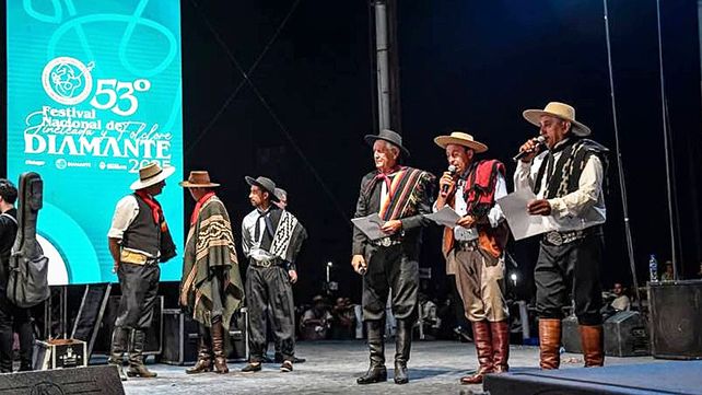 En esta edición, la Municipalidad de Diamante y la Comisión Organizadora del Festival homenajeó a Don Marcelino, quien desde hace 28 años es el encargado de realizar los premios que se entregan en la gran final; y al colaborador y planillero de la jineteada, por muchos años, Luis Muñoz.
