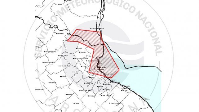A las 17.15 el SMN emitió un aviso por "tormentas fuertes con ráfagas y ocasional caída de granizo" para las siguientes zonas: Islas del Ibicuy en Entre Ríos; los partidos de Campana, General San Martín, Malvinas Argentina, San Fernando, San Isidro, San Miguel, Tigre, Tres de Febrero, Vicente López y Zarate en la provincia de Buenos Aires, el Río de la Plata Interior y la Ciudad Autónoma de Buenos Aires. El aviso tiene una validez de hasta dos horas desde la emisión.