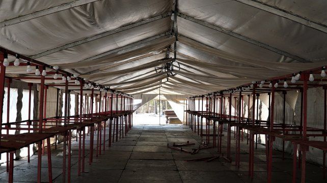 En el predio del parque Quirós continúa la instalación de las carpas climatizadas para los artesanos sobre bulevard Ferrari y los distintos espacios como carpa de sabores en el interior del predio.