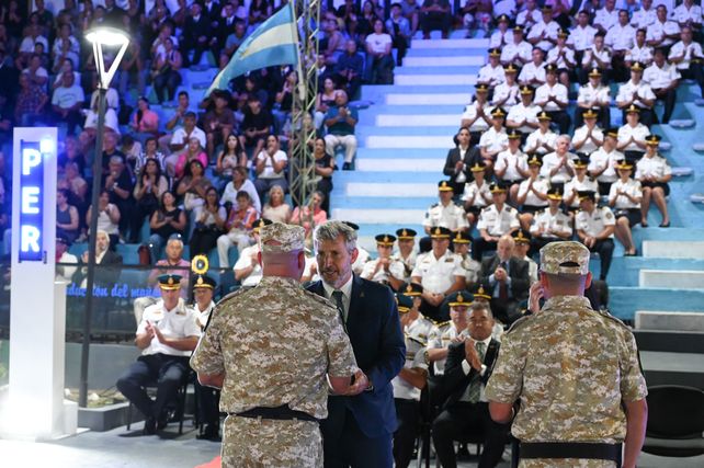 Asimismo, el mandatario remarcó cambios impulsados en la organización de la fuerza. En ese sentido, señaló que desde la provincia "decidimos que, a partir de nuestra gestión, todo aquel que tuviera la responsabilidad y la capacidad de llevar un arma tenía que estar en la calle cuidando la paz, cuidando a los vecinos y por eso también creamos un cuerpo administrativo en la policía".