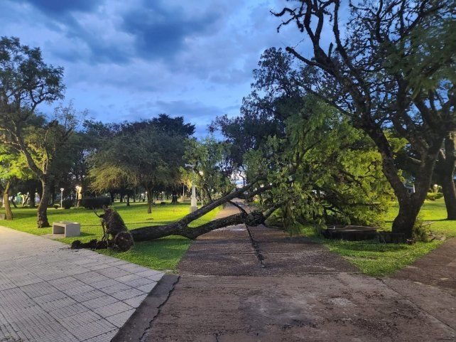 Además, se registró la caída de numerosos árboles en distintos sectores y espacios públicos, postes y cables de telefonía derribados en Av. Colón —entre Av. Artigas y La Cremería— y la caída de una columna de alumbrado público en barrio San Miguel. Personal de Obras Públicas y Tránsito trabaja en tareas de despeje y normalización de servicios, en tanto las condiciones climáticas lo permitan. Rige alerta naranja por tormentas y se recomienda circular con extrema precaución.