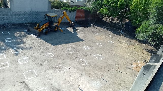 Actualmente se avanza en el replanteo de las mamposterías del Nivel Inicial y del Salón de Usos Múltiples (SUM).