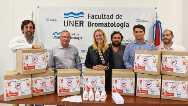 Este lunes, la Facultad de Bromatología de la Universidad Nacional de Entre Ríos (UNER) entregó a la Municipalidad de Gualeguaychú la segunda producción de repelentes de mosquitos fabricados por la casa de estudios en el marco de la campaña de prevención del dengue. Se tratan de 720 unidades que serán distribuidas en distintos centros de salud de la localidad.