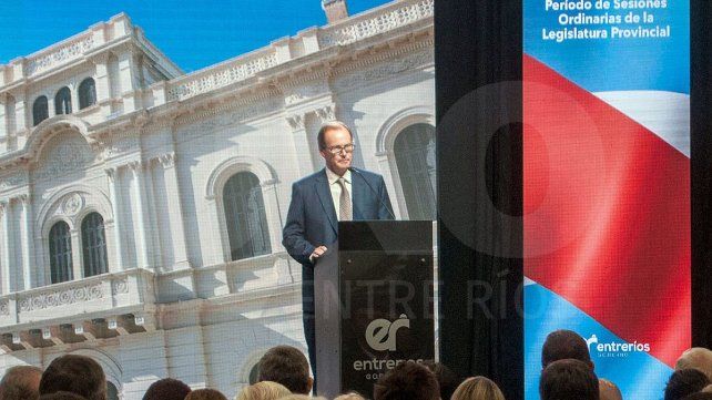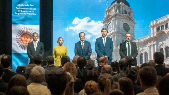 Bordet dejó inaugurado el 144° período de sesiones ordinarias de la Legislatura Entrerriana. Acompañado por la vicegobernadora, Laura Stratta, y por el presidente de la Cámara de Diputados, Ángel Giano, adelantó que este año se completará la restitución de aportes al Iosper, se eliminará la carga tributaria provincial de la tarifa eléctrica, se abrirá una convocatoria para inversiones y proyectos en el sector portuario y se concretará la rehabilitación de las rutas provinciales 1 y 2 en el norte entrerriano.