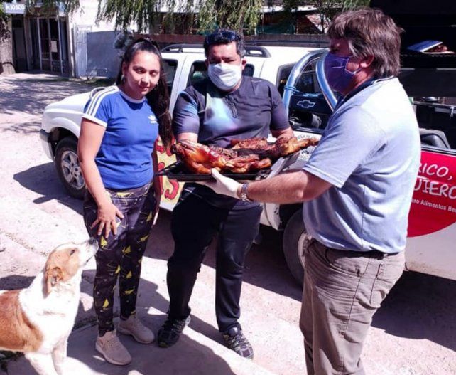 La iniciativa contraria a las medidas tomadas por la pandemia del Covid-19 Coronavirus se realizó junto a una FM local y la agasajada resultó Verónica Larrea, a quien le dejaron la bandeja con el animal asado para compartir en familia.