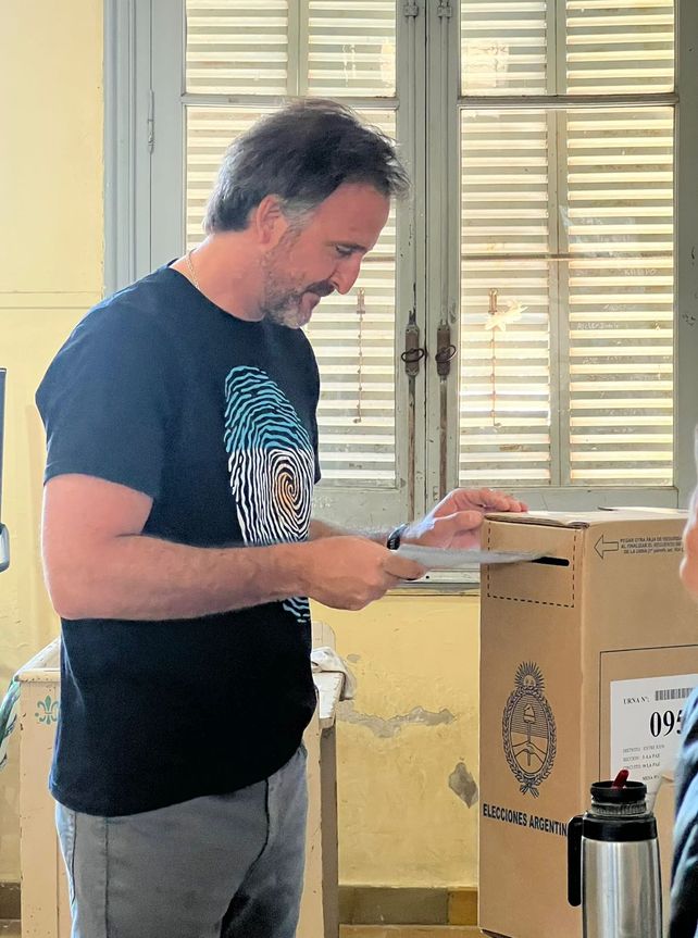 El candidato a senador por la Alianza La Libertad Avanza, Joaquín Benegas Lynch, emitió su voto este domingo a las 9.30 en la Escuela N° 1 "José de San Martín", en la ciudad de La Paz.