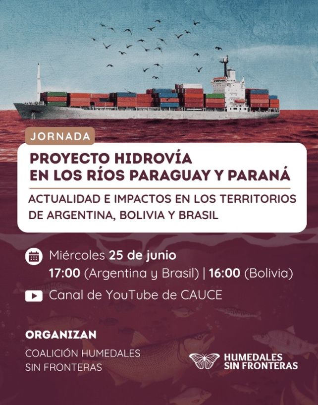 Esta jornada virtual se inscribe en un proceso colectivo de articulación e incidencia que organizaciones, asambleas y colectivos vienen desarrollando desde distintos puntos de la Cuenca del Plata, ante el avance del modelo de transporte fluvial extractivista que propone la Hidrovía Paraguay–Paraná.