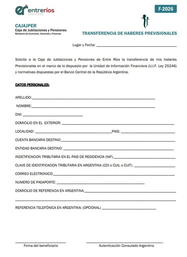 Otra cosa a tener en cuenta es el Formulario F-2026, que es un formulario específico que los beneficiarios deben completar y hacer autenticar por el Consulado Argentino. Este trámite debe actualizarse y enviarse cada vez que cambie algún dato personal.