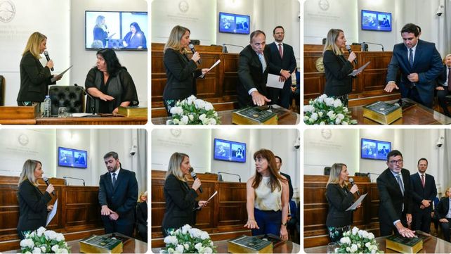 De acuerdo a lo que marcan la Constitución provincial y el reglamento del Cuerpo, ante Stratta juraron los 17 nuevos senadores. El bloque mayoritario, de Más Para Entre Ríos, está conformado por: Marcelo Berteth (San Salvador), Juan Conti (Tala), Juan Pablo Cosso (Villaguay), Patricia Díaz (La Paz), Gladis Domínguez (Feliciano), Hugo Maín (Paraná), Nancy Miranda (Federal), Martín Oliva (Uruguay) y Víctor Sanzberro (Victoria).