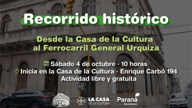 Se realizará una caminata cultural desde la Casa de la Cultura hasta la Estación del Ferrocarril General Urquiza, el encuentro será este sábado, desde las 10. La propuesta es libre y gratuita e invita a recorrer espacios emblemáticos de Paraná.